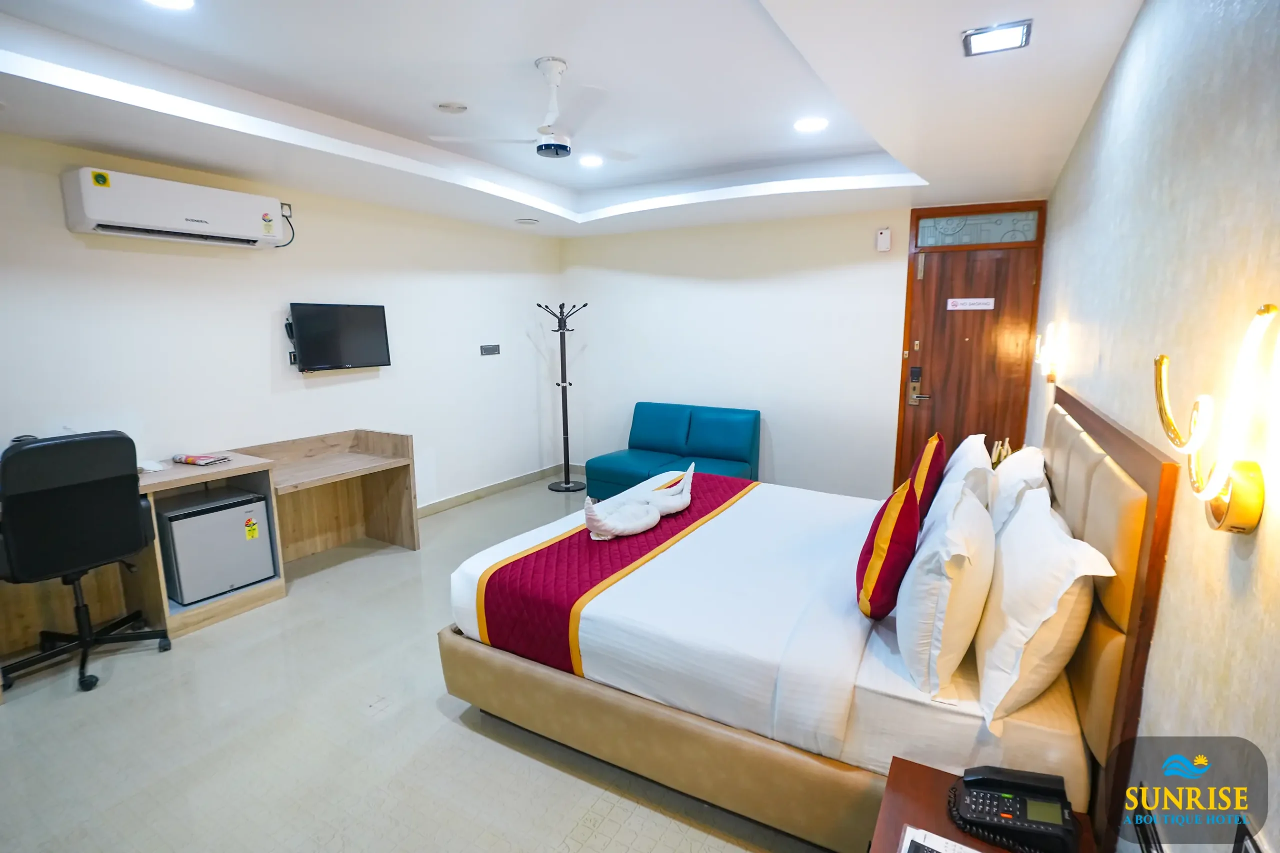 Each room at Sunrise A Boutique Hotel is meticulously designed with sophisticated interiors, premium furnishings, and modern amenities to cater to the needs of business travelers. The plush bedding, ergonomic workspace, and stylish decor create an inviting atmosphere, ensuring a rejuvenating stay.